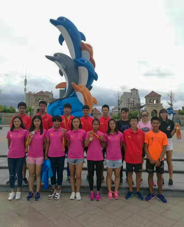 图为2017年6月,阿于五牛(前排左三)第一次随队参加在浙江举行的全国帆板冠军赛。新华社发