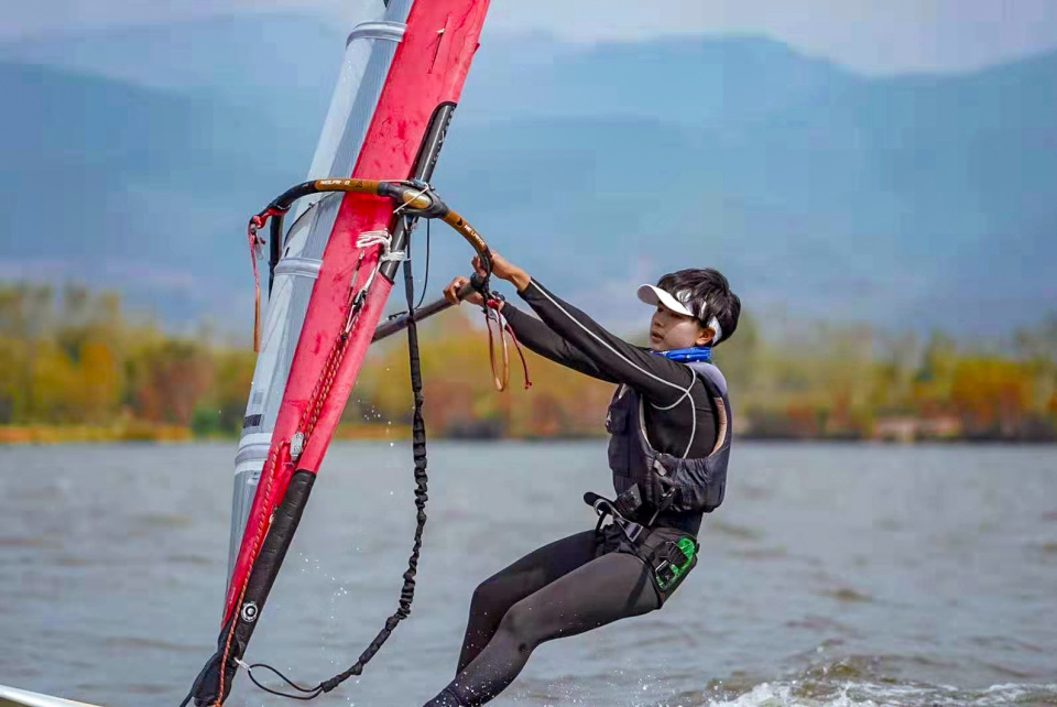 图为2018年11月,阿于五牛参加在西昌举行的全国帆板青年锦标赛。新华社发