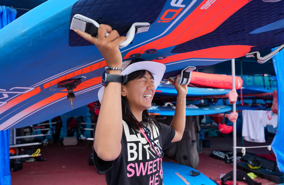 图为2025年8月,阿于五牛参加在山东烟台举行的全国帆板冠军赛。新华社发